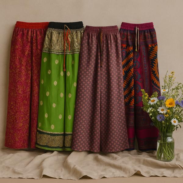 Vores egen miljøvenlige kollektion: Vidste du, at vi har vores egen linje af af upcyclet saritøj? Det er fremstillet af genbrugte sarier fra Indien. Ved at genbruge tekstiler sparer man mest muligt på jordens ressourcer, og genbrug er den mest bæredygtige gren indenfor modeverdenen.
