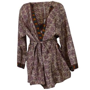 Flot kort kimono i genanvendt silkesari. Denne kimono er let og luftig, og meget behagelig at have på. Den har bælte i taljen og brede ærmer med et flot fald.