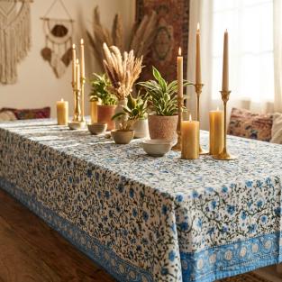 Blockprint er et gammelt håndværk, hvor hver dug trykkes i hånden. Små variationer i farve, mønster og duft er en naturlig del af processen og en del af det unikke udtryk.