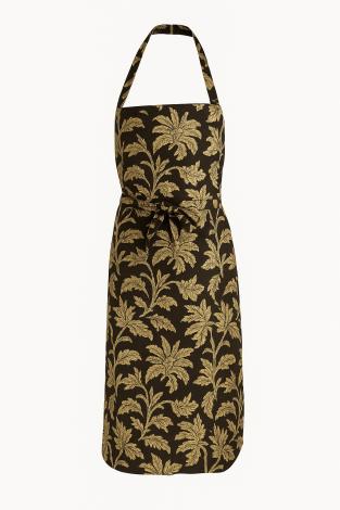 Dette unikke forklæde med lomme er ikke blot et smukt stykke håndværk – det er også et funktionelt redskab til dit køkken eller kreative værksted. Forklædet er dekoreret med et levende og detaljerigt mønster, som er blockprintet i hånden efter traditionelle teknikker. Hver eneste trykblok er håndskåret, og hvert tryk er stemplet manuelt, hvilket giver forklædet et autentisk, let varierende udtryk og en charme, du ikke finder i masseproducerede tekstiler.