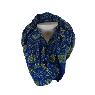Stort tørklæde i håndprintet bomuld. Tørklædet er printet med block print metoden, som er en gammel, traditionel metode, hvor farven påføres et stykke udskåret træ, hvorefter det trykkes ned mod tekstilerne.