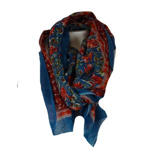 Stort tørklæde i håndprintet bomuld. Tørklædet er printet med block print metoden, som er en gammel, traditionel metode, hvor farven påføres et stykke udskåret træ, hvorefter det trykkes ned mod tekstilerne.