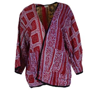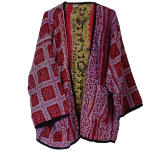 Denne smukke kantha jakke er syet af vintage indiske sarier og håndquiltet med den traditionelle kantha-stingteknik. Jakken har et let og afslappet fit, som gør den behagelig at have på idnendør som cardigan eller let jakke når det er lunt udenfor. Hver jakke er unik – der findes kun én med præcis dette mønster og farvespil. Den har en skøn boheme-fornemmelse og kan styles både med jeans, kjole, leggings eller som farverig cardigan i hverdagen.