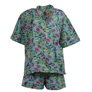 Smuk og unik pyjamas i bomuld, der kombinerer let komfort, smukt håndværk og et helt særligt udtryk. Hver pyjamas bliver syet og trykt i Jaipur hos en lille familieejet virksomhed, hvor blockprint-traditionen er blevet videregivet gennem generationer. Resultatet er et autentisk og levende design, der gør denne pyjamas til damer til noget helt særligt.