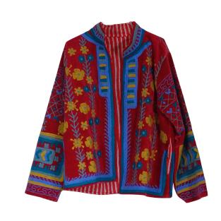 En unik og stilfuld velourjakke, håndlavet i Jaipur og udsmykket med farverige Suzani-broderier. Ingen jakker er helt ens.