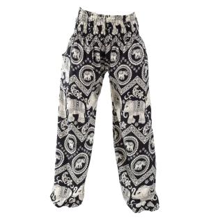 Flotte haremsbukser med vidde i benene. Med elastik i taljen samt ved anklerne. Let og luftigt stof, der er meget behageligt at have på. Bukserne har en lille, praktisk lomme på den ene side.